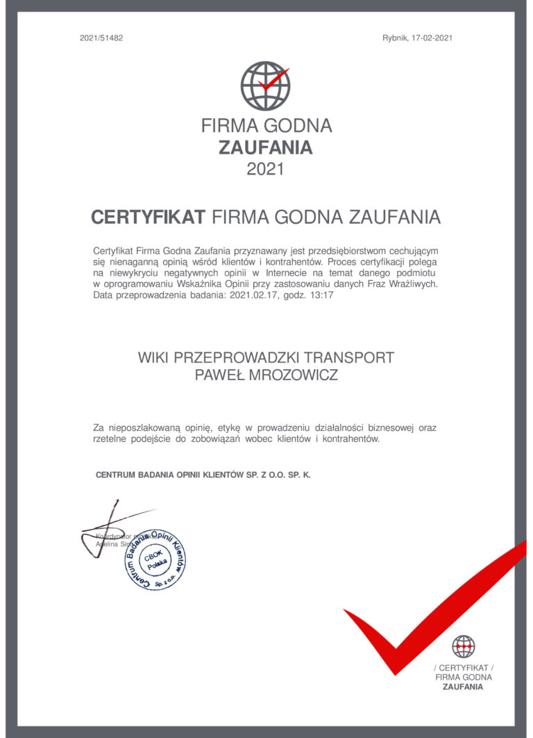 Zmiana miejsca zamieszkania w późniejszym etapie życia dla wielu osób stanowi duże wyzwanie. Przeprowadzka do nowego mieszkania, ośrodka pomocy społecznej czy do domu spokojnej starości nie musi jednak wiązać się ze stresem i długotrwałymi przygotowaniami. Firma Wiki z Warszawy świadczy profesjonalne usługi transportowe na najwyższym poziomie. Dzięki profesjonalnym pojazdom, wieloletniemu doświadczeniu i wysokim kompetencjom jesteśmy w stanie szybko przenieść dorobek życia seniora w wyznaczone miejsce.